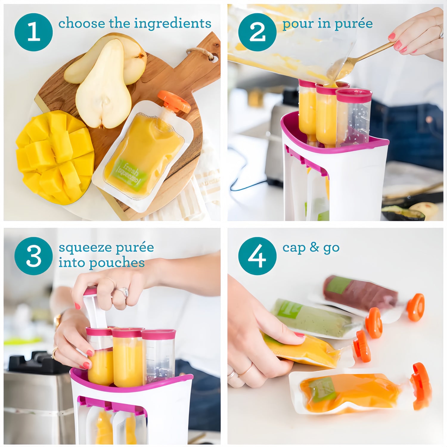 NutriPrep™ gives you total control—fresh purées, clean ingredients, and grab-and-go convenience. The mess-free squeeze station makes batch prep fast, organized, and leak-proof, so your little one can enjoy self-feeding with a smile.